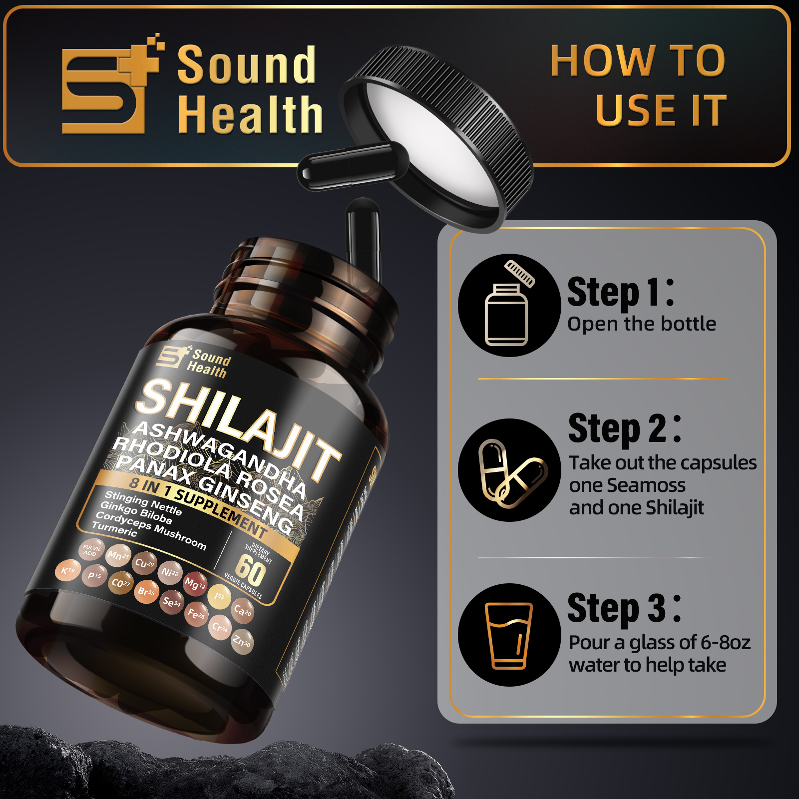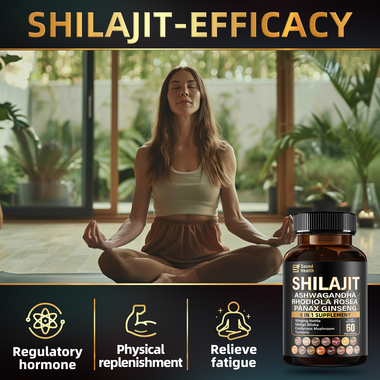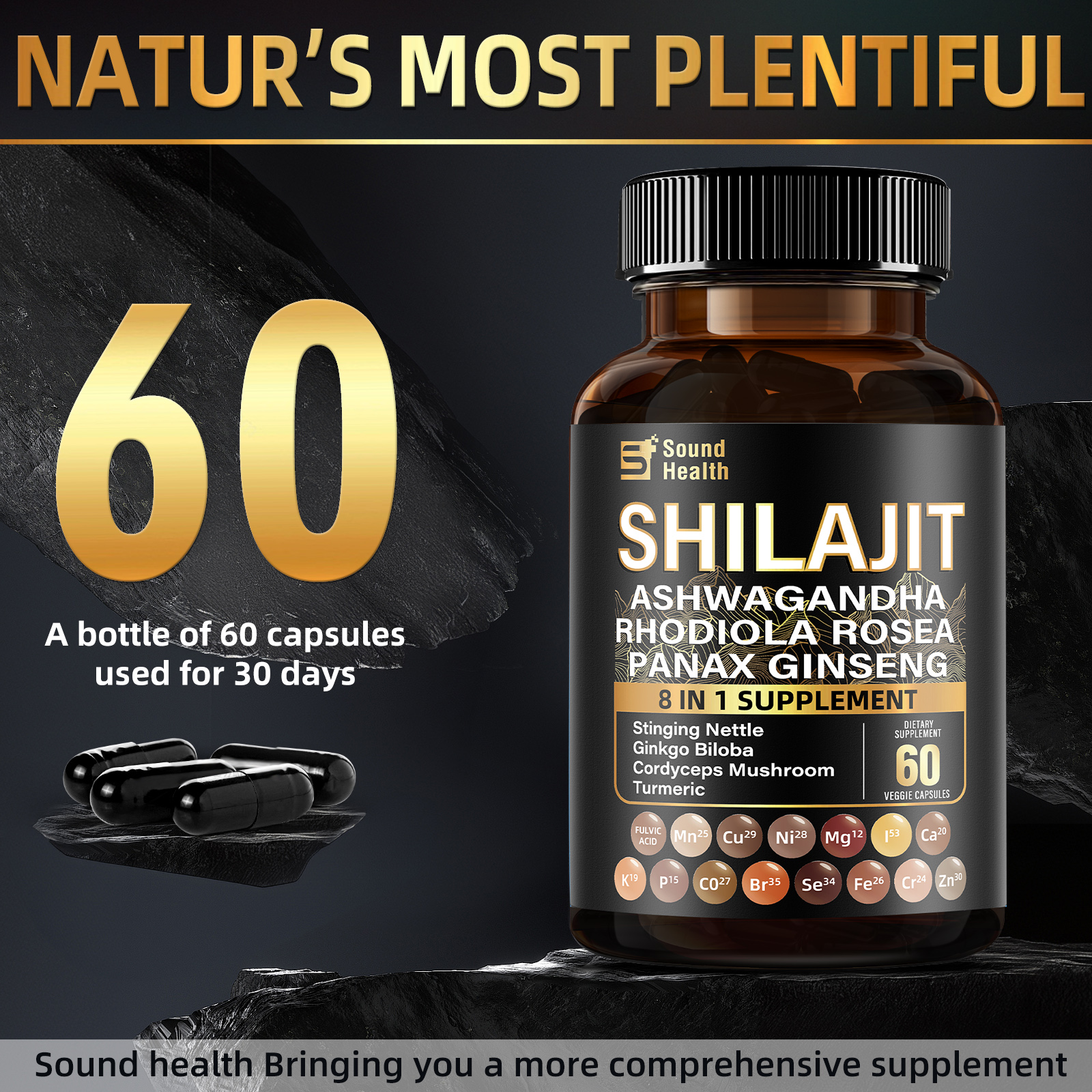 SoundHealth Shilajit 8-in-1 Complex Capsule for Men&Women | 400mg Pure Shilajit Resin Extract | 60 Vegan Capsules | 1 Capsule Per Serving| Mineral Supplement