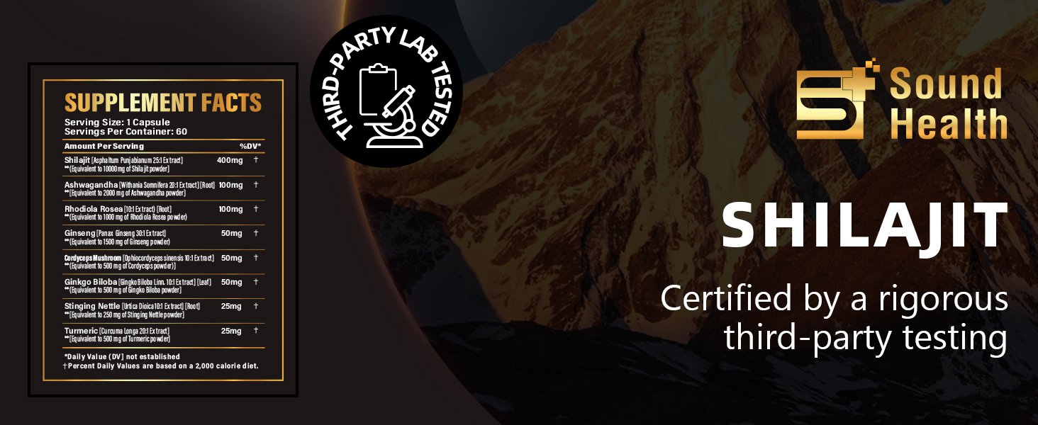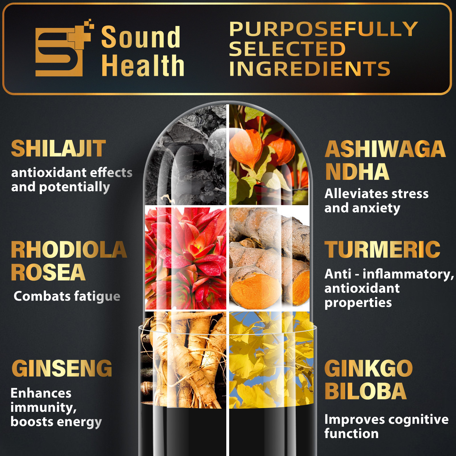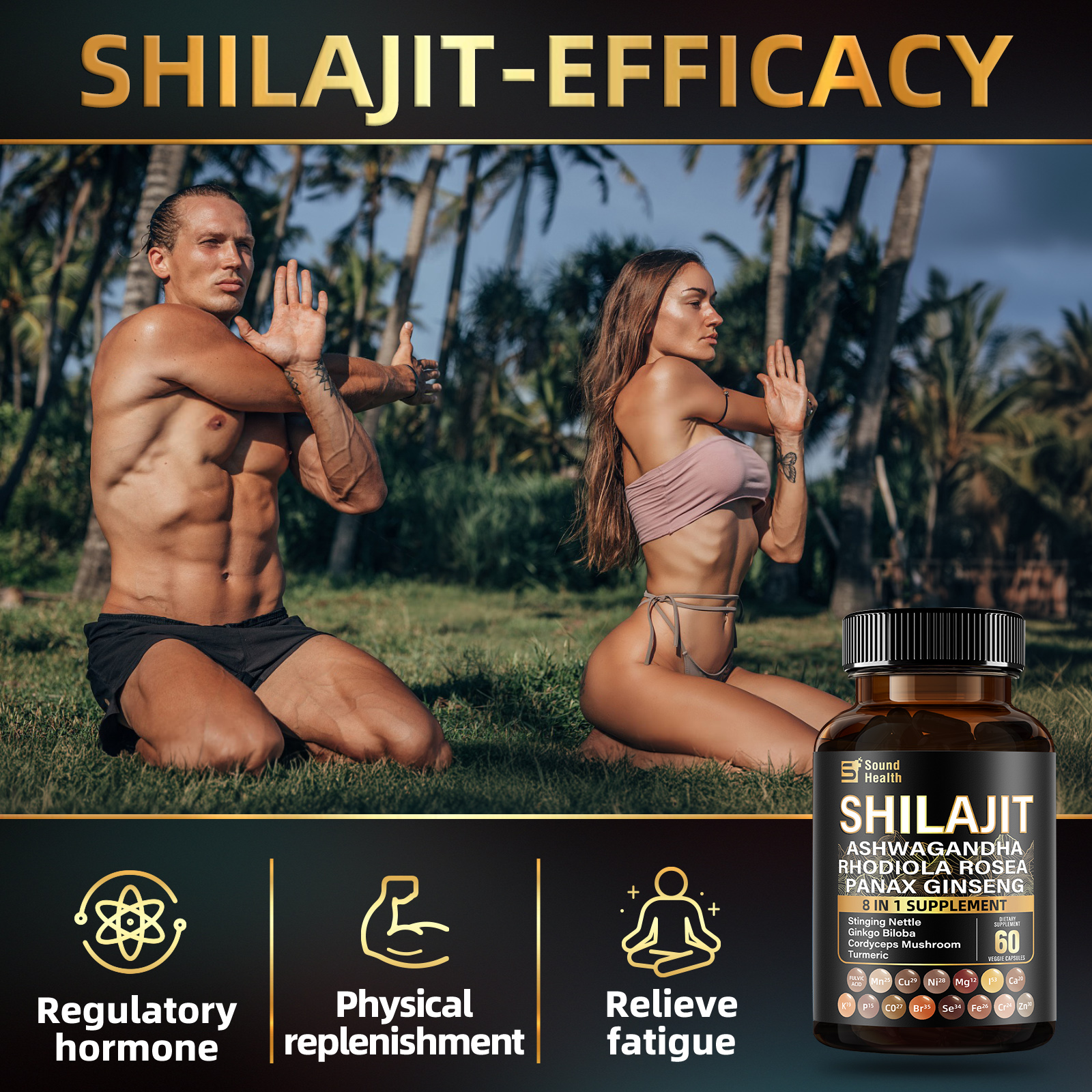 SoundHealth Shilajit 8-in-1 Complex Capsule for Men&Women | 400mg Pure Shilajit Resin Extract | 60 Vegan Capsules | 1 Capsule Per Serving| Mineral Supplement